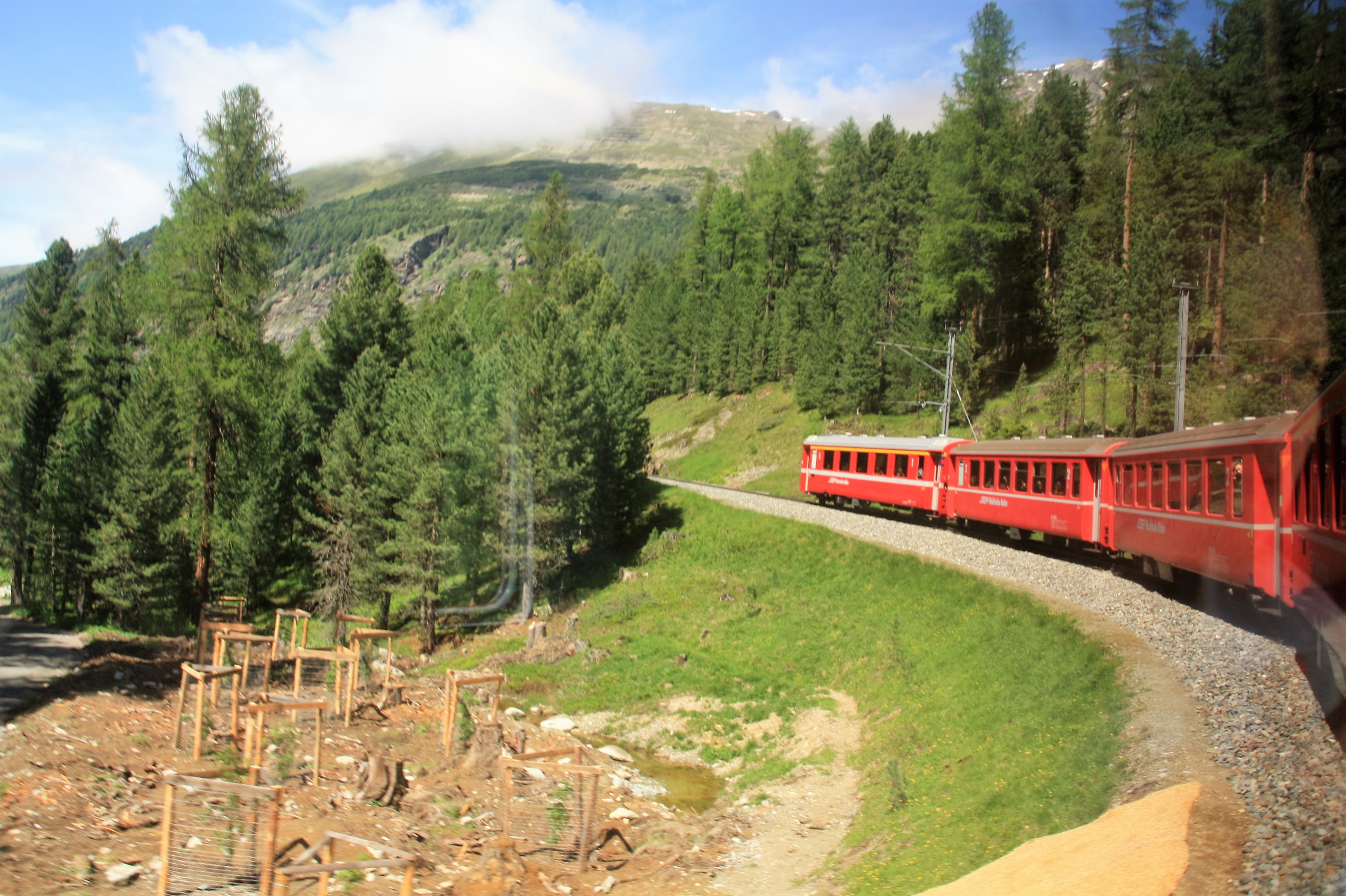 Наверняка немногие знают о швейцарском поезде Bernino Express, который недаром называют самым медленным в мире экспрессом. Маршрут его проходит среди живописных пейзажей, ярко-зелёных лугов, водопадов, горных озёр и вершин, где даже в конце июня лежит снег. На горных тропах не разгонишься, а виды из окон так красивы, что в некоторых местах поезд притормаживает, чтобы туристы успели сфотографировать незабываемые картины.